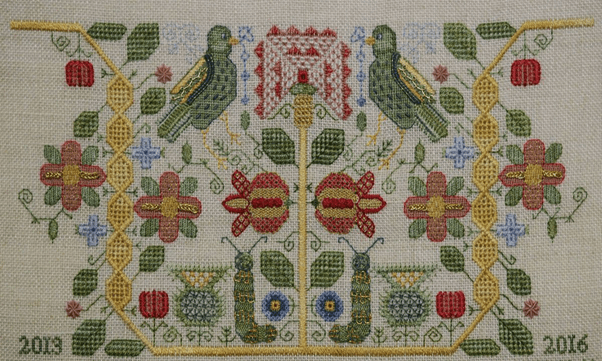 She enjoys designing her own traditional pieces with a modern outlook. She particularly enjoys counted work and cross stitch.
